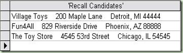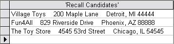To show an example, we'll use our good old database that we obtained at the beginning of this course. Let's say you have a recall on the Rabbit bean bag toy. It's a terrible choking hazard for little children. We now need to send a return envelope to all the customers that purchased it.
